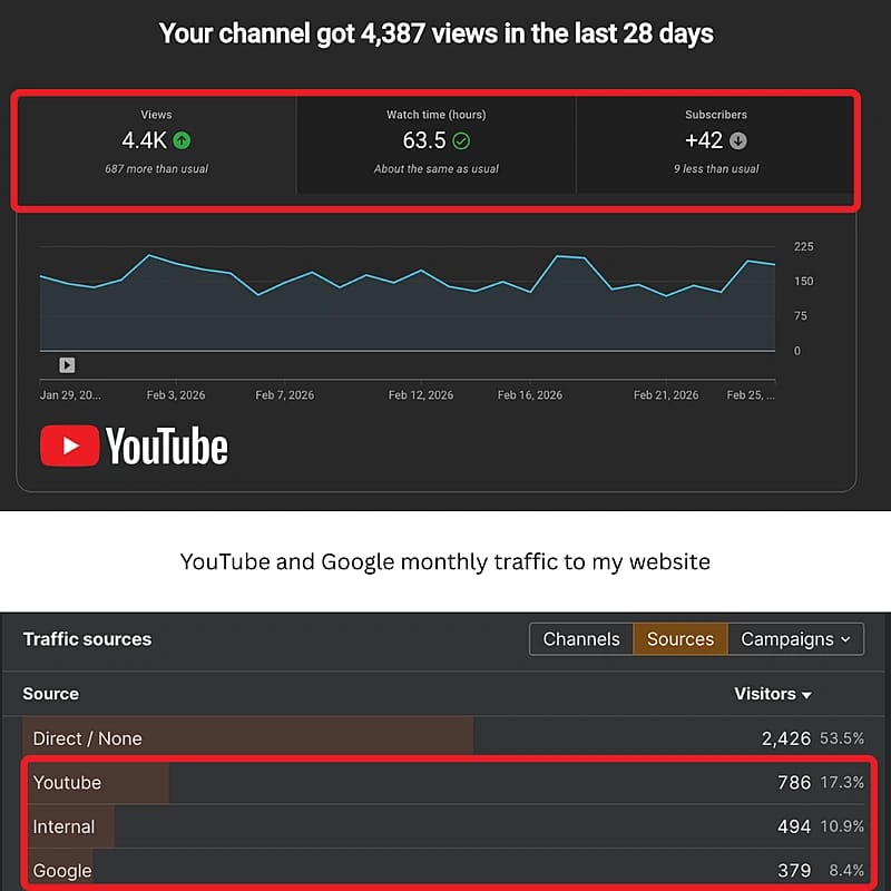SEO traffic analysis for my startup from YouTube and Google